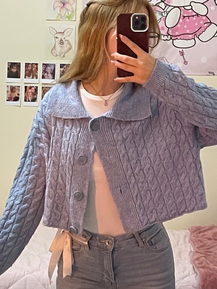 Bebe mavisi Örgü Kadın Hırka