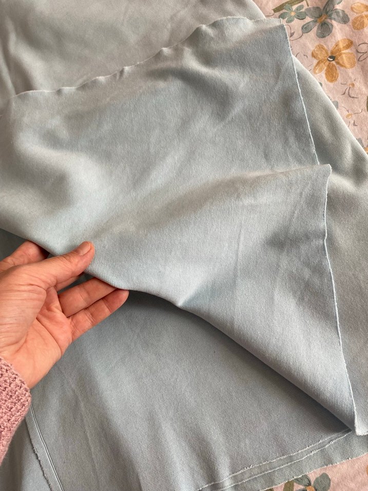 128 cm boy 198 cm en Bebe mavisi tişört sweatshirt dikmek için uygun kumaş yıkandığı için çekme yapmaz ihtiyaç fazlası olduğu için satıyorum Esnektir