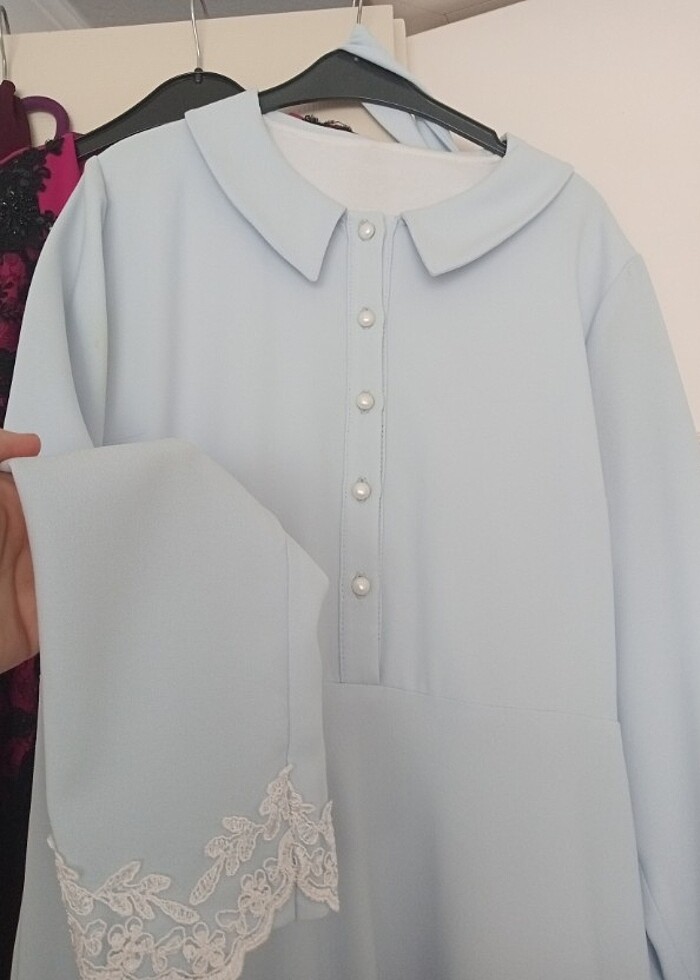 Ürün sadece 1 kere giyildi özel dikimdir içinde pamuklu astarı mevcut bedeni olmadığı için satıyorum kol ucunda ve etek ucunda güpürleri mevcut
