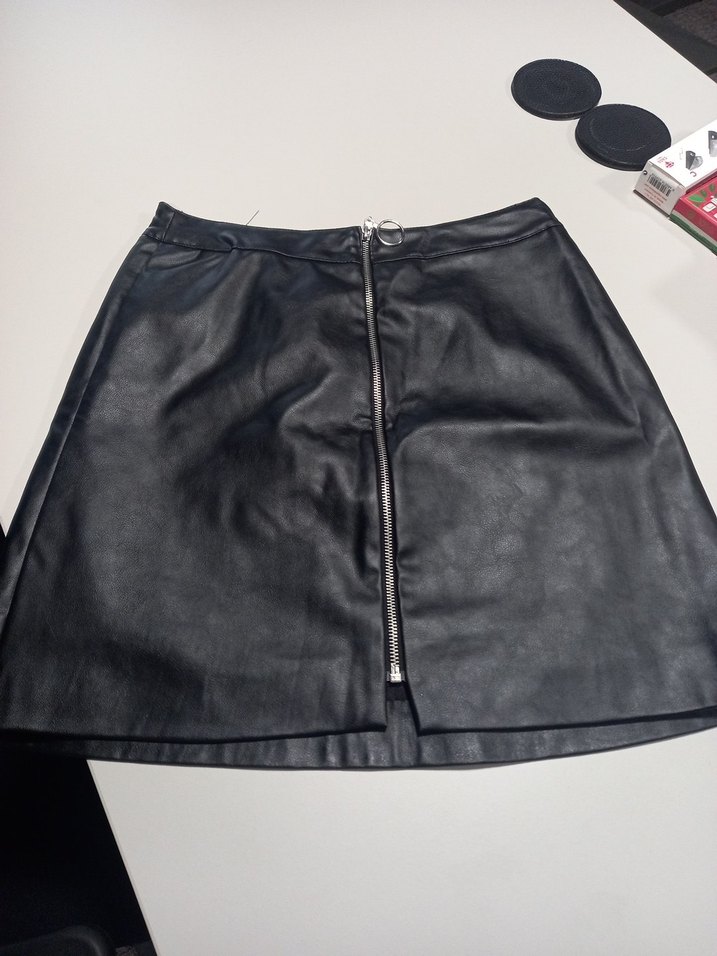 ön fermuarlı siyah deri mini etek. Günlük kullanıma uygun cesur bir parça. L beden