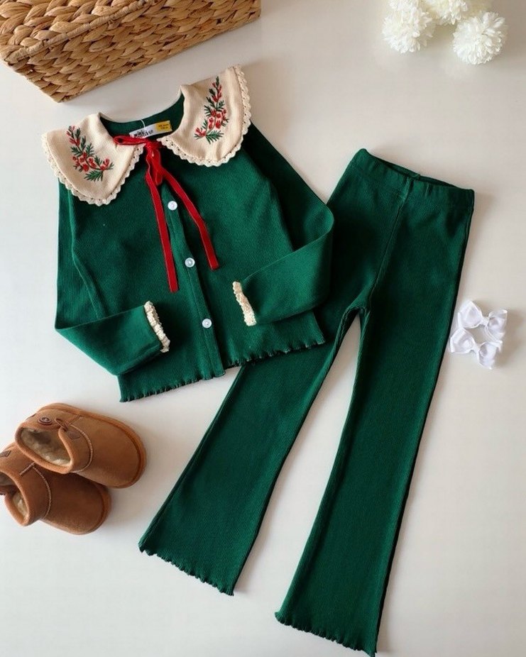 Ürünün bedeni 9/10 yaş. Kız Çocuk yeşil Bebe Yaka Nakışlı Takım Yaşlar: 4-5 / 5-6 / 7-8 / 9-10 / 11-12 Kalıp: Tam kalıptır Kumaş: Penye Kaşkorse Daha fazla model için hesabıma göz atın.