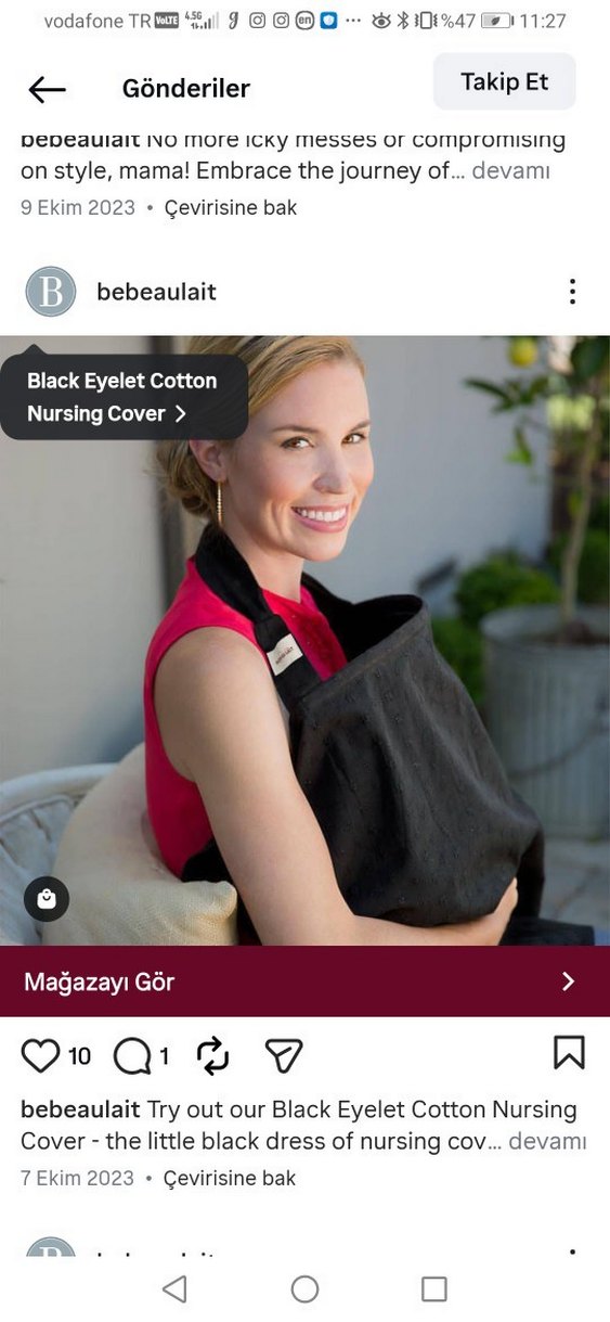Bebeaulait siyah pamuklu emzirme örtüsü, konforlu kullanım ve gizlilik sağlar. Anneler için pratik ve rahat bir emzirme çözümüdür.