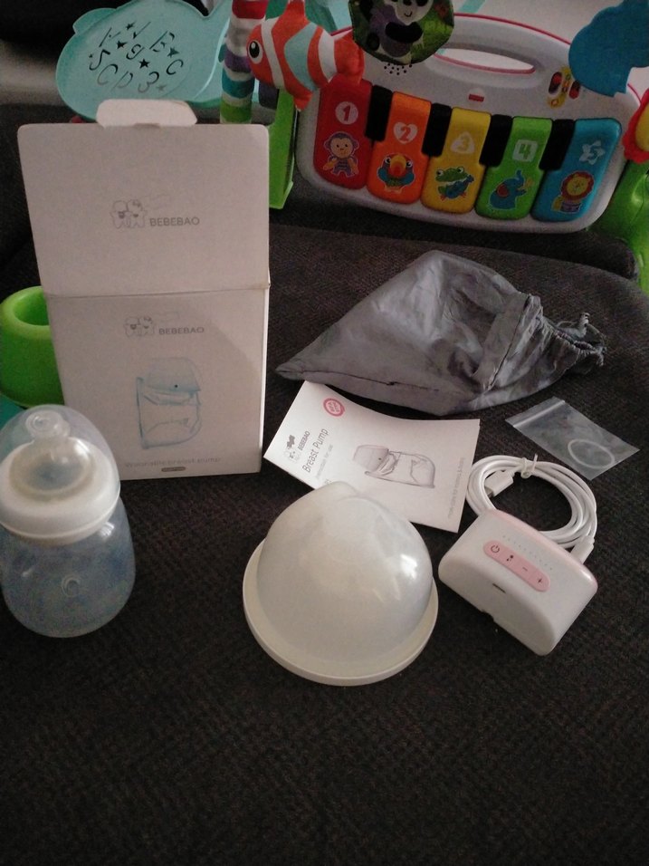 Beyaz elektrikli göğüs pompası seti, pompa, biberon, USB kablosu ve saklama çantasıyla birlikte gelir. Kolay süt sağımı ve depolama sağlar. bebebao marka 1 hafta kullaildo bebeğim yoğun bakımda kaldıgi icin
