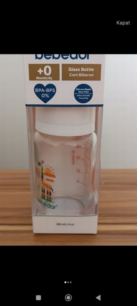 Bebedorun 125 ml cam bebek biberonu BPA ve BPS içermez. Doğumdan itibaren kullanılabilen silikon yavaş akışlı emziklidir.