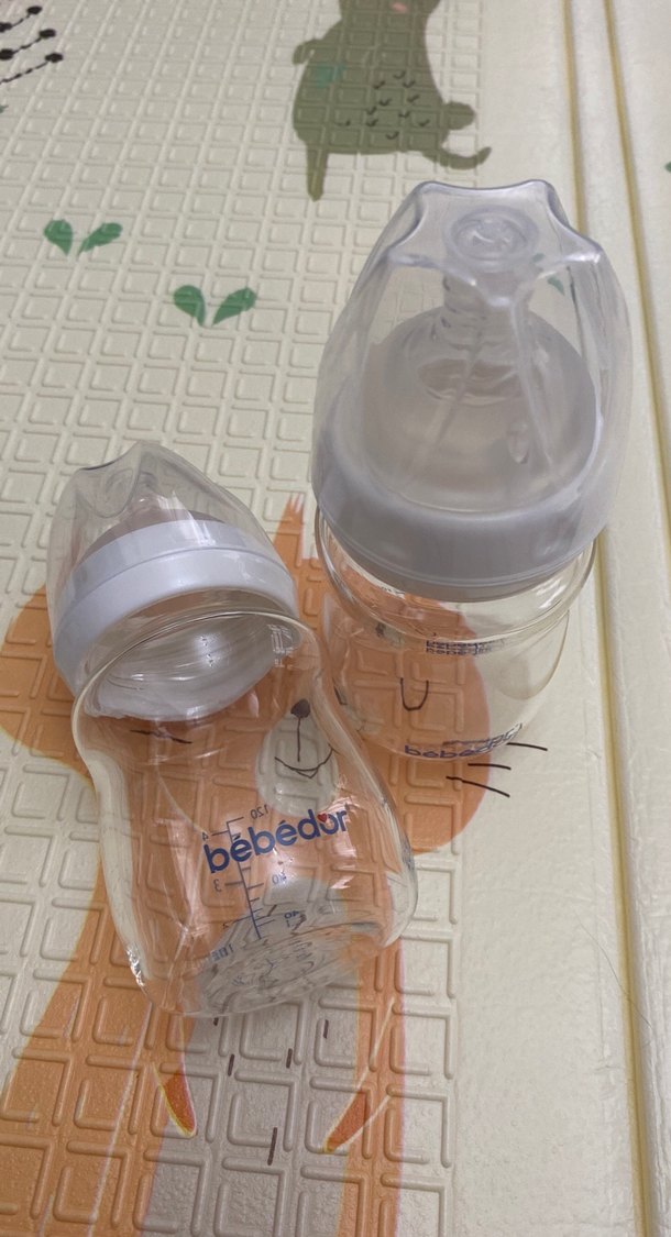Bebedor bebek biberonu şeffaf gövdeye ve beyaz detaylara sahiptir. Kolay besleme ve ölçüm için uygundur. 120 ml 2 adet