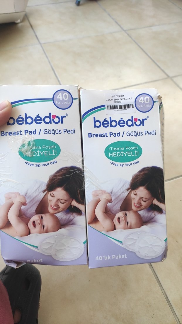 Bebédor göğüs pedleri pastel beyaz renkte, 40'lı pakette sunulur. Taşıma poşeti hediye olarak dahildir.