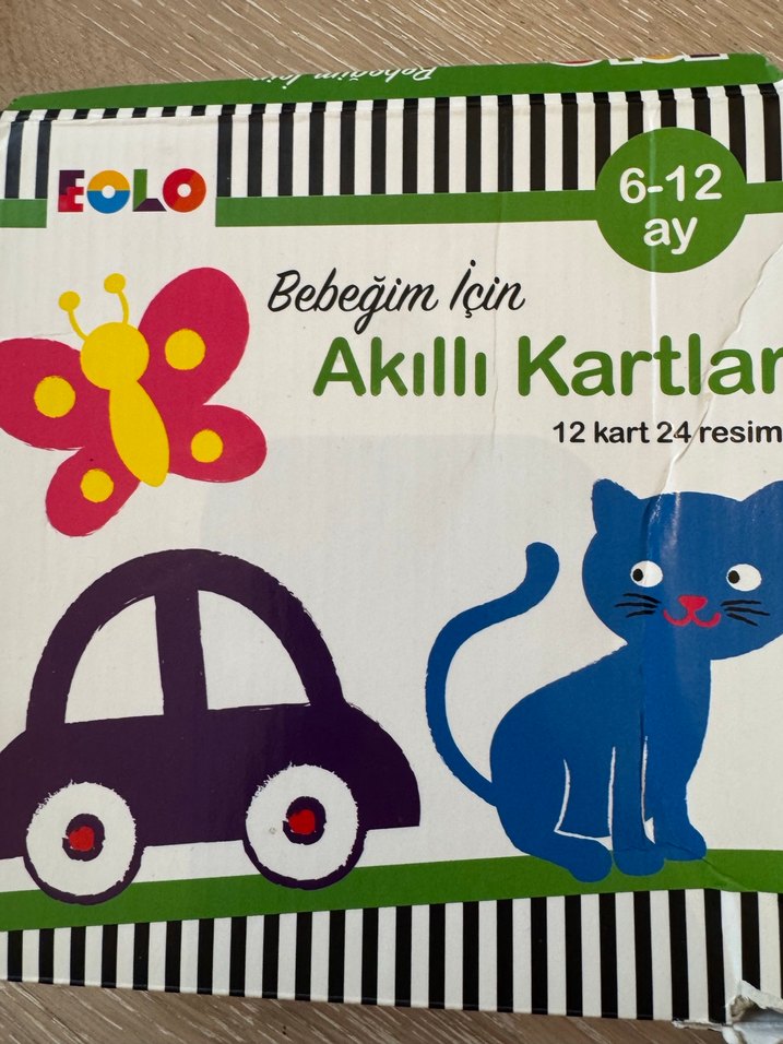 6-12 ay bebekler için. Normalde 12 kart fakat 2 tanesi kayıp. Kutusu yırtık fakat kartların durumu iyi.