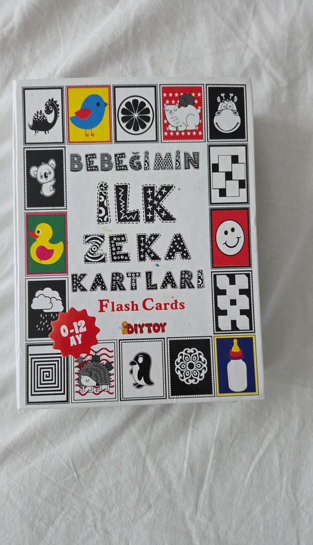 0-12 ay bebekler için canlı ve basit resimli, erken zeka gelişimini destekleyen hafif renkli kartlar seti. sadece kutusunda açılma oldu bantladım. kartlarda sıkıntı yok #bebek #kitap #görsel #zekakartı