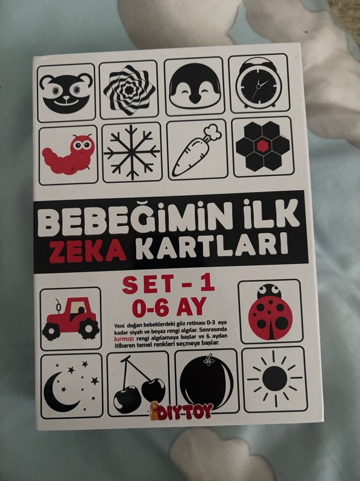 0-6 ay bebekler için siyah, beyaz ve kırmızı yüksek kontrastlı zeka kartları seti. Görsel gelişimi destekler.