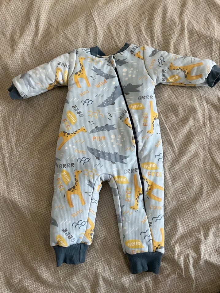 Yumuşak polar kumaştan yapılmış, fermuarlı ve desenli mavibebek tulumu, rahat sokak stili sunar. Hiç kullanılmamıştır