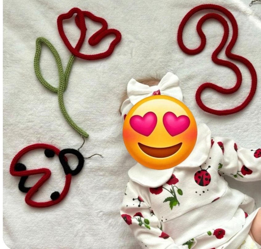 3 lü set ugur böceği, çiçek, 3 yazısı bulunur. İstediğiniz ay oluşturulur #markatemsilidir #bebek #çekim #month #ay #dekor #model