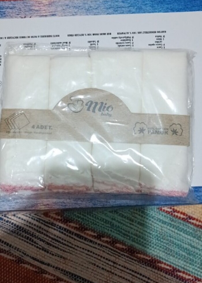 Hiç kullanılmamış paketlidir kenarlarında pembe işlemeleri var 4 adettir 0 pamuktur