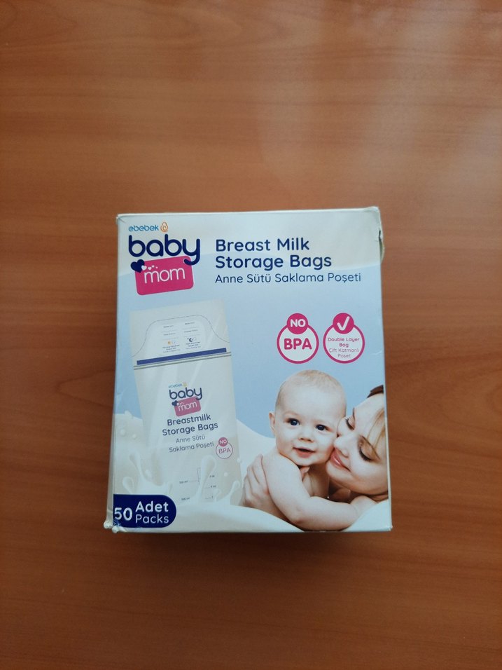 Pastel bej renkte, BPA içermeyen ve çift kilitli 50 adet bebek anne sütü saklama poşeti. Kaç adet kullanılmış emin değilim ama fazlası duruyor