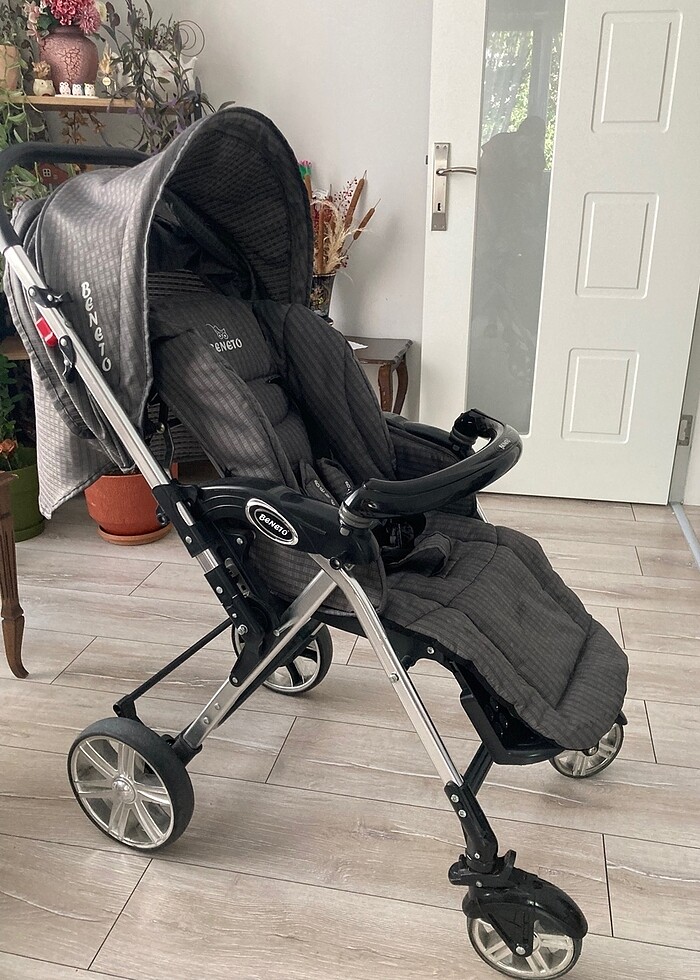 Beneto gri bebek arabası, çift yönlü puset kullanımına uygun, alt sepeti mevcut, tekerlek kilit ve dönen/ sabit tekerlek sistemi mevcut koltuğu geriye tam yatıyor ayak kısmı açılıp kapanabiliyor, güneşlikte fermuar mevcut büyütüp küçüktülebilir, kolay kapanma ve hafif bebek arabası çizik dahi yok temiz ve kullanışlı ürün