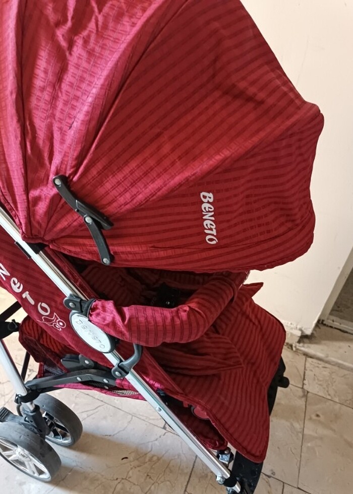 1 yada 2 ay ancak kullanildi temiz üründür tutma yerlerinde ambalajı bile uzerindedir 3pozisyonlu yatabilen sırt ayarı tam kapanabilen rüzgarlık tente 360 derece dönebilen tekerlekli ekstra pedli oturma ünitesi vardır