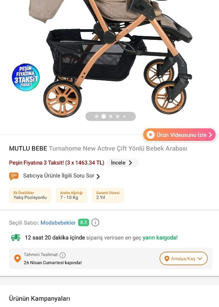 Bebek arabasını kızım için çok araştırarak almıştım hem uygun fiyatlı hem kaliteli uzun süre kullanabileceğim bir ürün olmasını istedim. Fakat doğumdan sonra arkadaşım bebek arabası hediye etti, bu ürünü hiç kullanmadık sadece ilk aldığımız zaman evin içerisinde bakıp incelemek için kurduk ,çünkü trendyoldan aldım ve herhangi bir sorunu olsaydı iade edecektim. şimdi de elimde fazla olduğu için satmak istiyorum . Ürün fotoğraf ta göründüğü gibidir 4baby marka