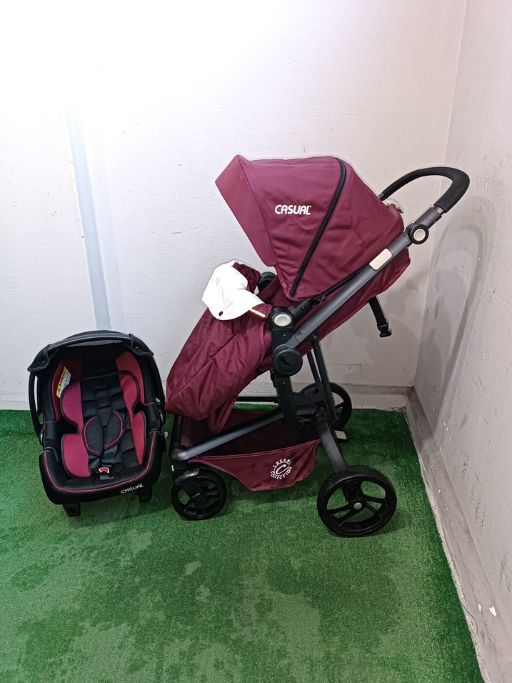 Bordo renk Casual bebek arabası, sağlam iskelet ve uyumlu oto koltuğuyla konfor ve güvenlik sunar. Güneşlik ve sepet içerir. Hiçbir sorun sıkıntısı yok tertemiz sağlamdır alabilirsiniz bende birsürü bebek arabası var sayfama bakabilirsiniz
