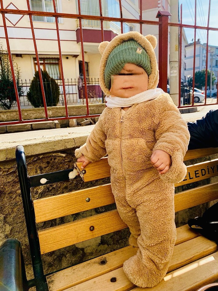 Kahverengi, kürklü ve kapüşonlu ayıcık kulaklı bebek tulumu. Desensiz ve dışarıda rahat kullanım için uygun. Bebeğim küçük olduğu için kışın pek dışarı çıkamadık dolayısıyla az kullanıldı . Yurt dışı ürünüdür içi sık silikon kaplı baya sıcak tutuyor eldiven ve patikli
