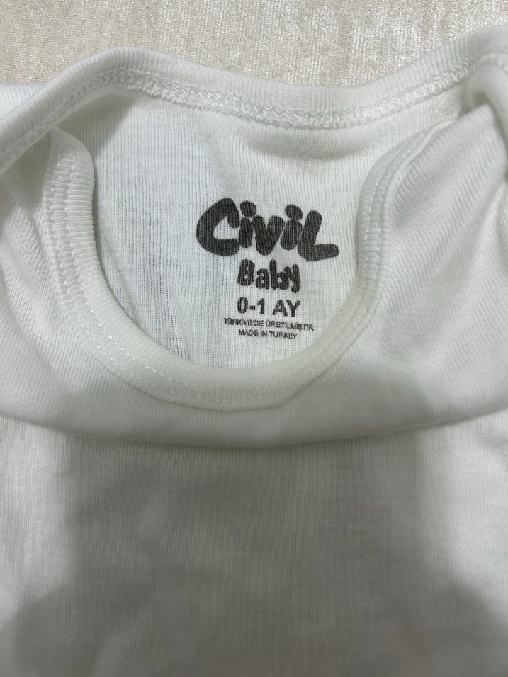Beyaz, gri baskılı bebek atleti, 0-1 ay yaş aralığına uygundur. Yumuşak ve rahat kumaş kullanılmıştır.