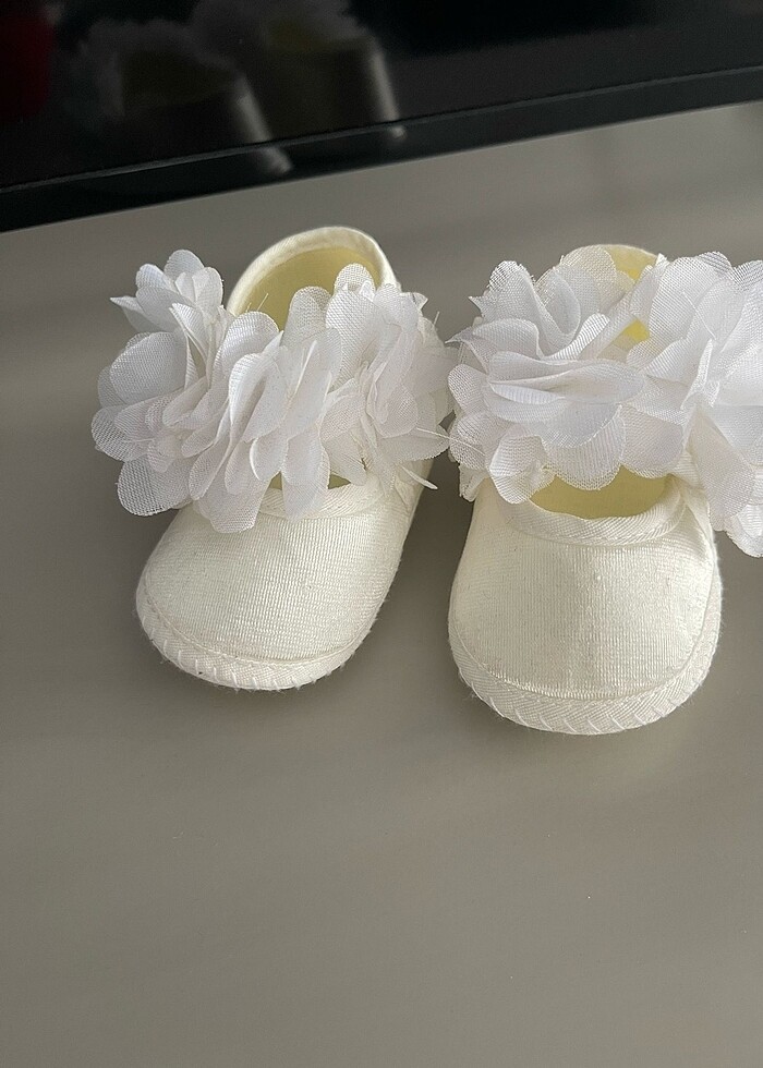 Bir kez doğum gününde giyilmiştir. 19-20 numara uyumludur. Alt tarafı hafif deformedir