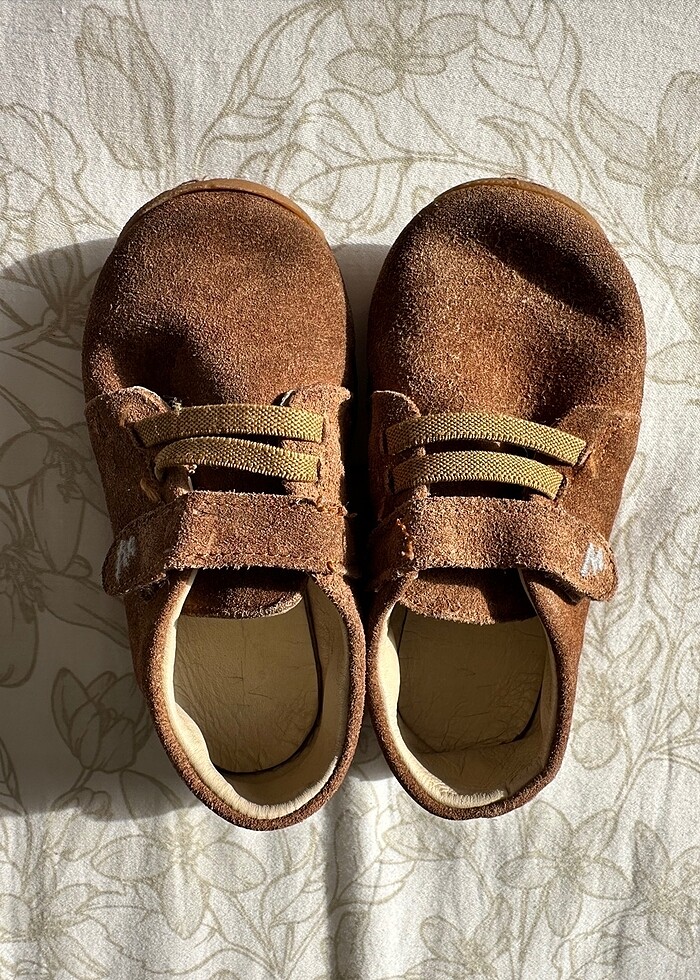 Baby walk ayak formunu tekrarlayan rahat kalıp 100% nubuk deri,ilk adım için ideal ayakkabı. Ebebekden alındı. 30derecede yıkanabilir