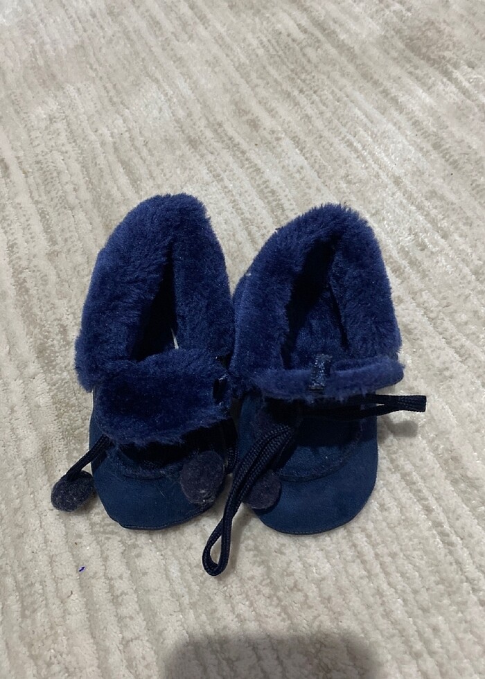 Hiç kullanılmadı içi kürklü uçları ponponlu kadife lacivert ayakkabı