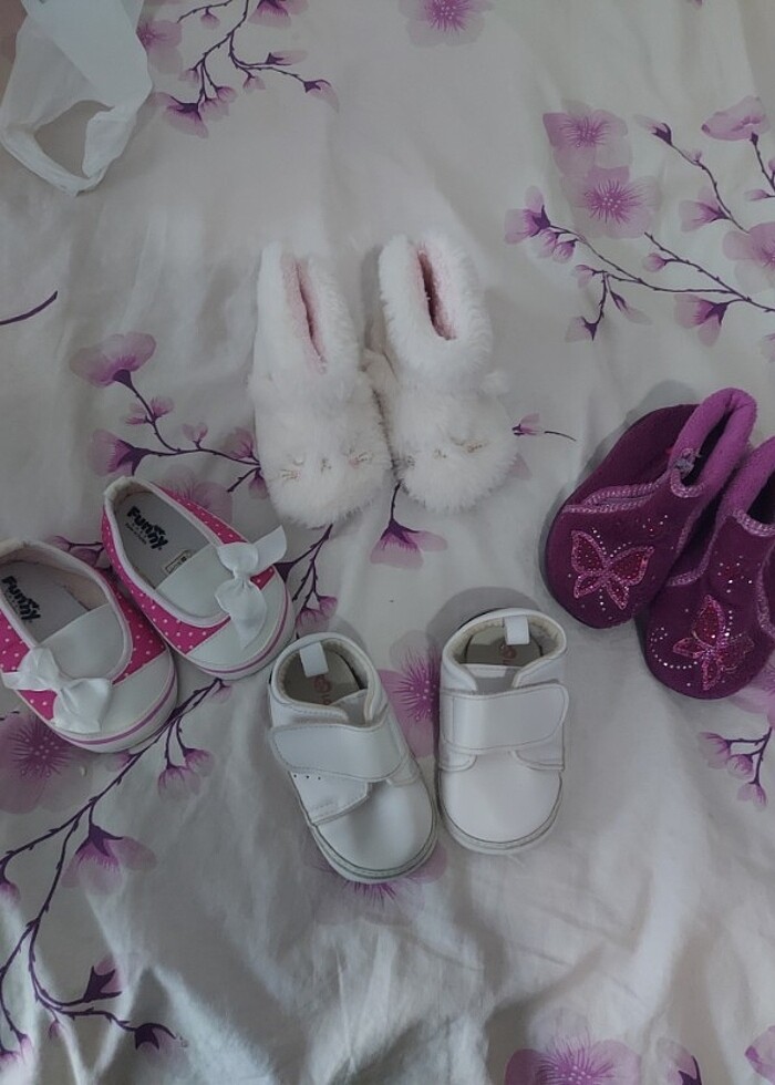 Ilk adim ayakkabilari 18 no ,pandifler 19,20 no pelus padif bir kez pembe hic giyilmedi