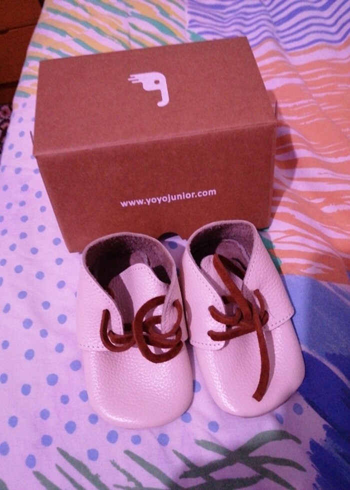 Bize hediye gelmişti hiç kullanmadık, kutulu yollanacaktır hiçbir problemi yok İnternet fiyadınıda koydum, 20 numara bebek ayakkabısı krem kahve rengi takımla felan güzel olabilir kahverengi ipleri var