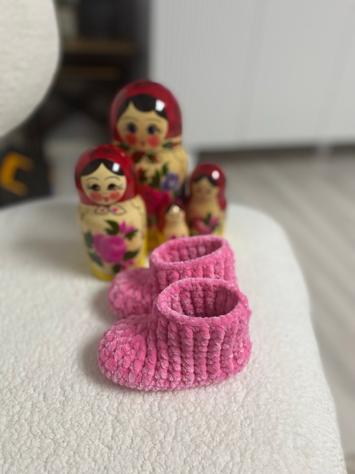 Renkli pembe örgü terlikler, yumuşak dokusuyla sıcaklık ve konfor sağlar. Bohem tarzı sevenler için uygundur.
