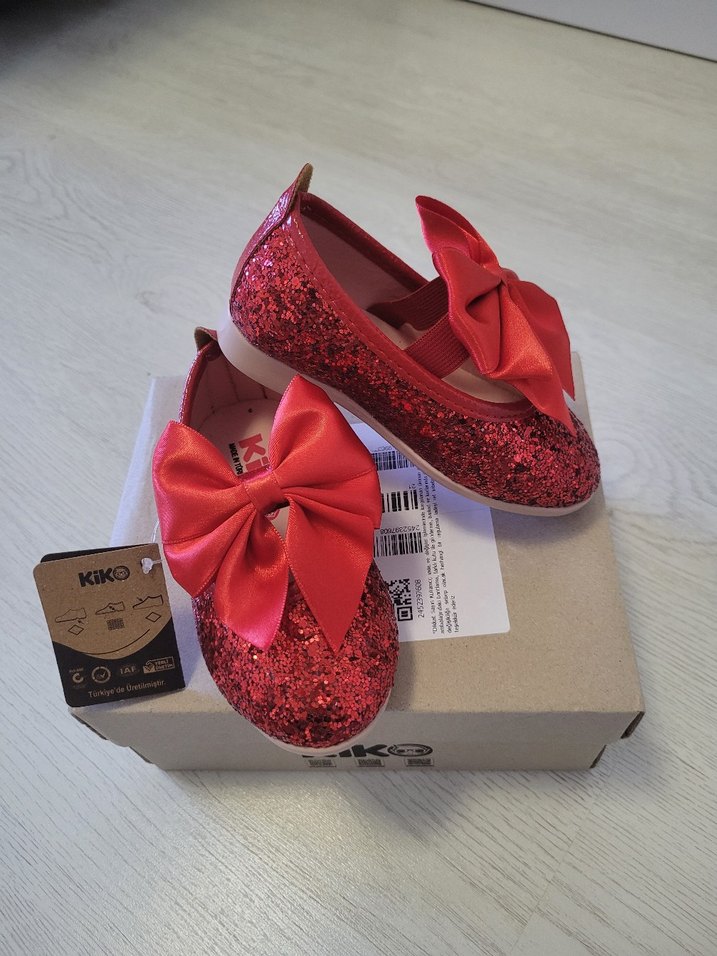 Kiko kids marka/ la mabelle modeli, ortopedik 22 numara 2 yaş kırmızı simli fiyonk detaylı kız çocuk babet. Ürün sıfırdır etiketi üzerinde hiç kullanılmamıştır.