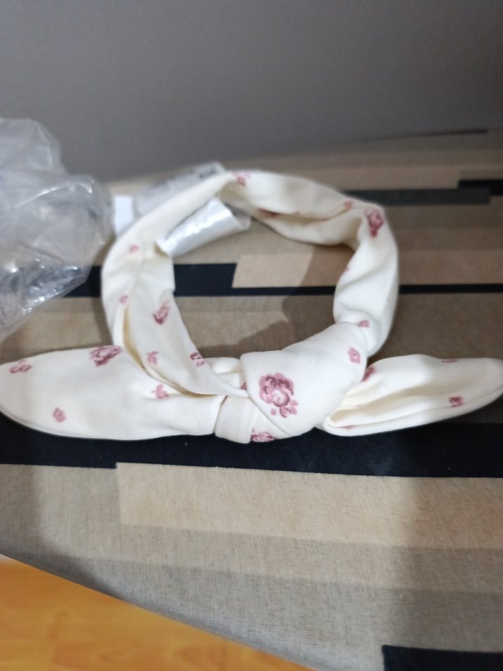 Yumuşak sentetik kumaştan yapılmış, pastel çiçek desenli beyaz saç bandı, kurdele detayıyla Paris sokak modasına uygun.