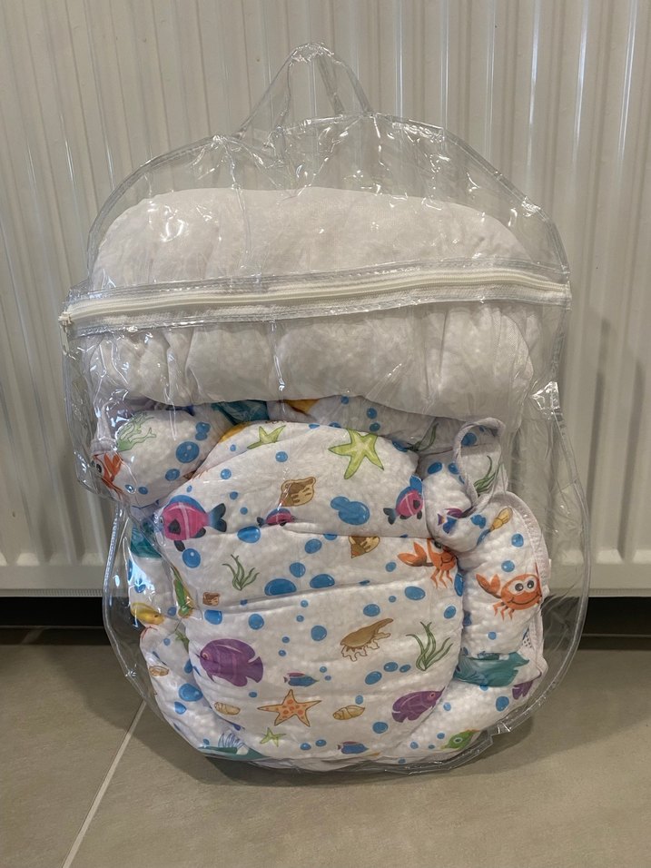 Renkli baskılı deniz temalı çocuk banyo filesi, yumuşak köpük topçuklarla dolu. Hiç bir kusuru yoktur temizdir. Çantası ile gönderilecektir