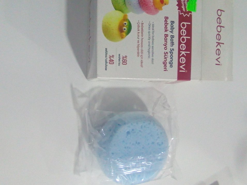 Yumuşak dokulu, pastel mavi renkte bebek banyo süngeri. Marka: BebekEvi.
