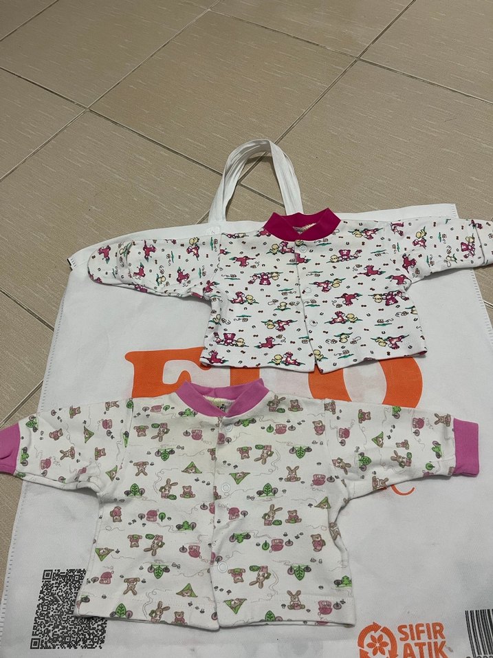 Renkli baskılı, uzun kollu bebek üstleri, çıtçıtlı ve yumuşak kumaşlıdır. Beyaz zemin üzerinde eğlenceli hayvan ve çiçek desenleri bulunur.