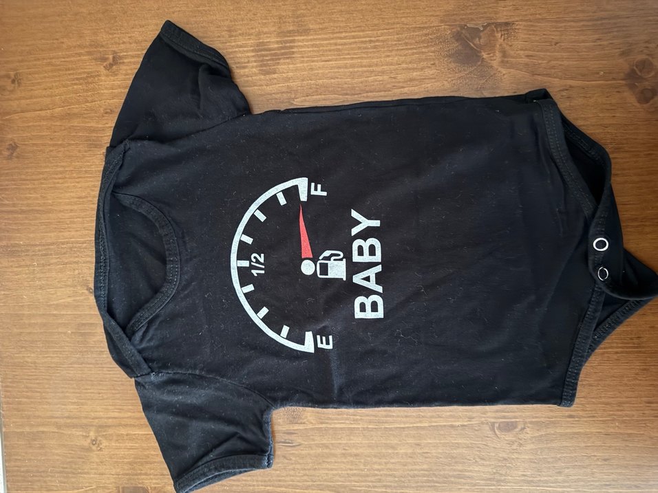 Bebek baskılı, siyah, kısa kollu, bisiklet yaka, normal boyda, yumuşak ve sıcak kumaştan yapılmış dar kesim hamile tişörtü. ⚡