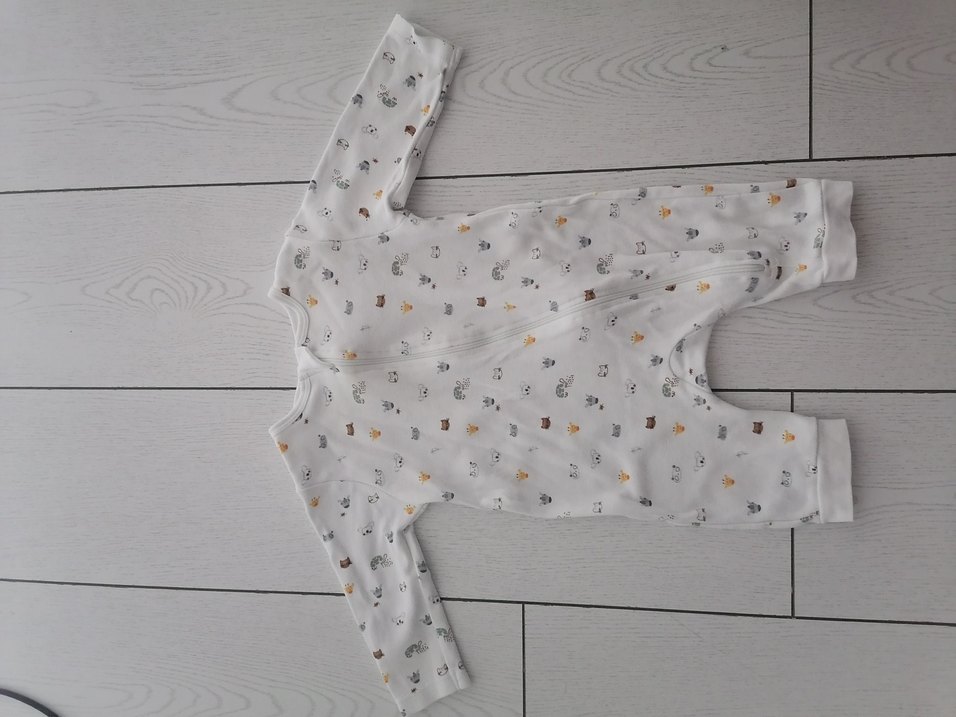 Uzun kollu ve yuvarlak yakalı bebek tulumu, yumuşak ve sıcak kumaştan üretilmiştir. Baskılı deseni ve düğmeli yapısıyla kolay kullanım sağlar. Beyaz ve gri tonlardadır. %100pamuk