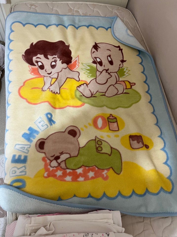 Bebek battaniyesi hem kız hem erkek bebeğe olacak renk ve desenlerde tertemiz ve sorunsuz.103 e 135 ölçülerinde