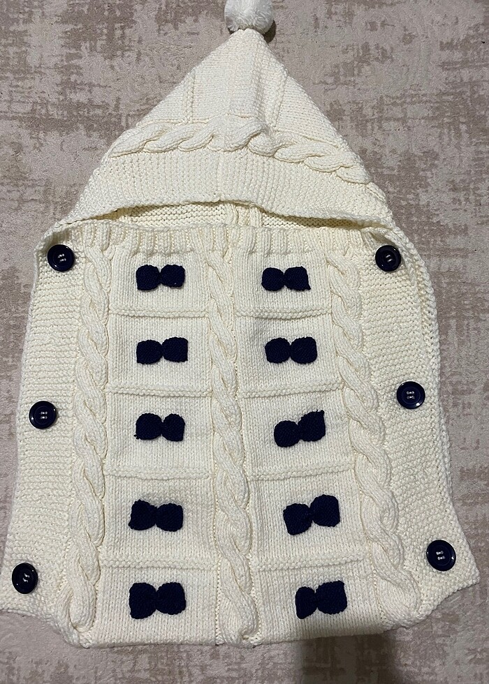 Dügmeler açılıyor rahat kullanımlı biz çok soğuklara denk gelmedik 2 kez kullanabildik bu yıl kullanamayacağımız için satıyorum. El örgüsü bebeğe uygun yündendir