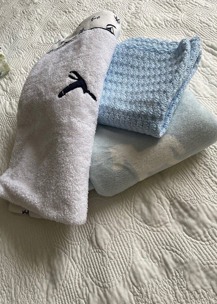 3 adet Beyaz Polar el yapımı , Mavi el örgüsü Digeri english home