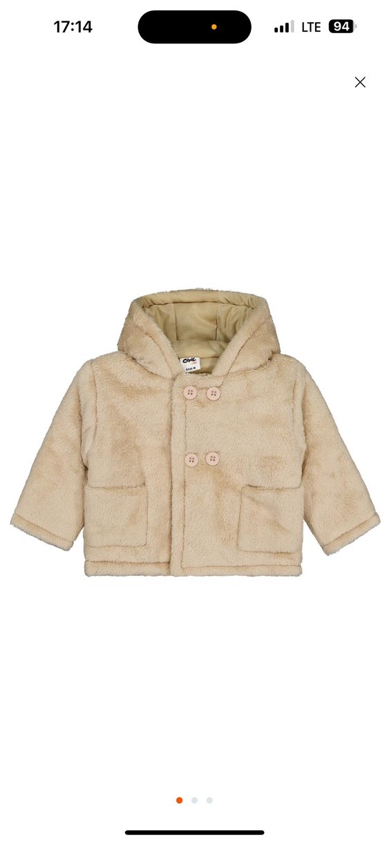 Bej renkli çocuk montu, yumuşak peluş kumaş ve kürk detaylıdır. Düğmeli ön kapama ve cepler bulunur. Rahat ve sade tarz için uygundur. Civil marka 9-12ay etiketli yeni ürün