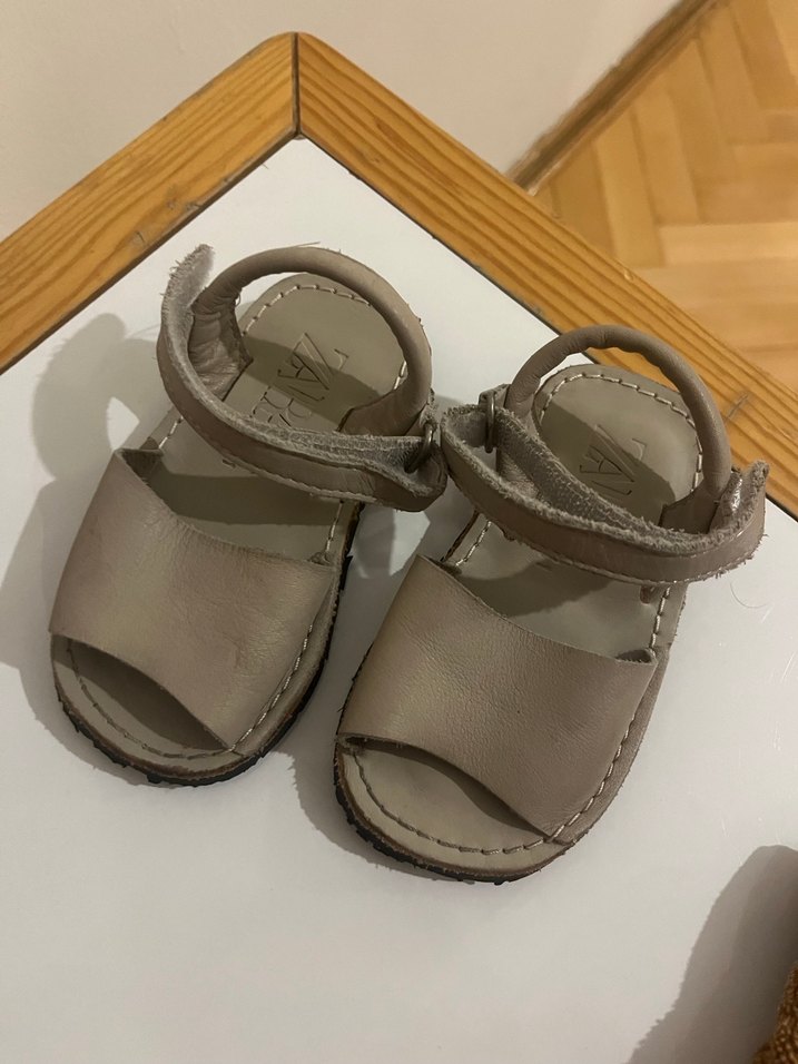 Bej renkli, tokalı bebek sandaleti. Düz ve bohem tarzda, rahat ve dayanıklı kauçuk tabanlıdır.