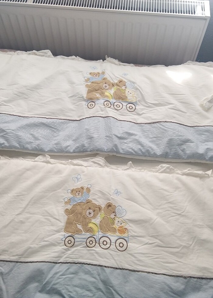 Bebek beşik uyku seti ve kenarlık az kullanıldı, 2 kenarlık bir örtü bir alt açma örtüsü mevcuttur