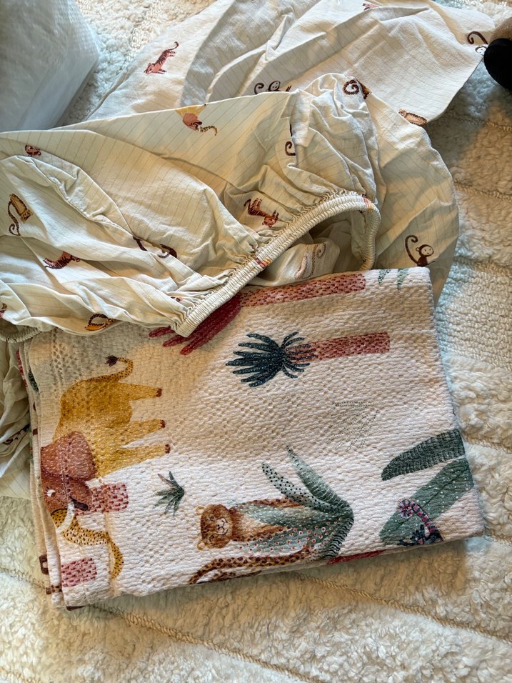 Beşik için pike ve lastikli çarşaf içerir