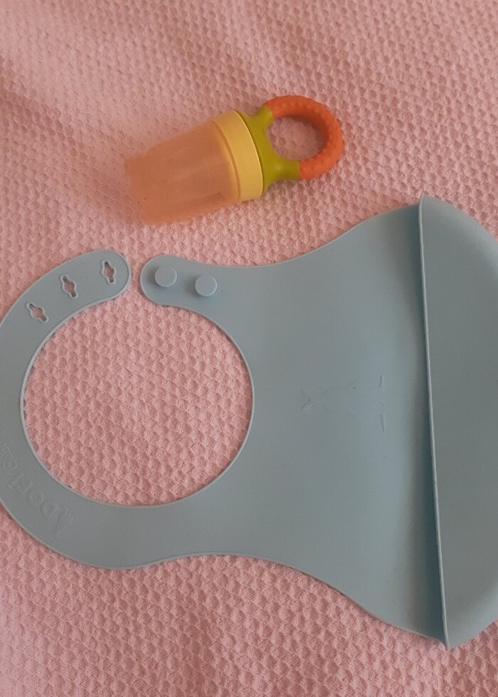 silikon mama önlüğü ve bebek meyve süzgeci iki üründe defo yook tertemiz mama önluğü kullanilmadi sıfır