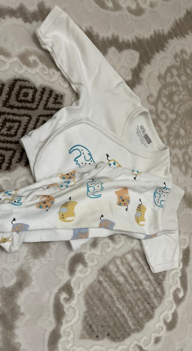 Bebek Beyaz Baskılı Uzun Kollu Hastane Kıyafeti