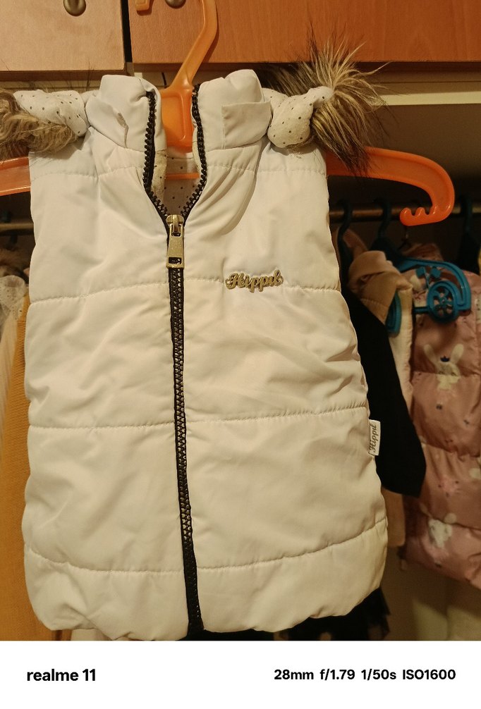 bebek Beyaz Fermuarlı Kolsuz Yelek