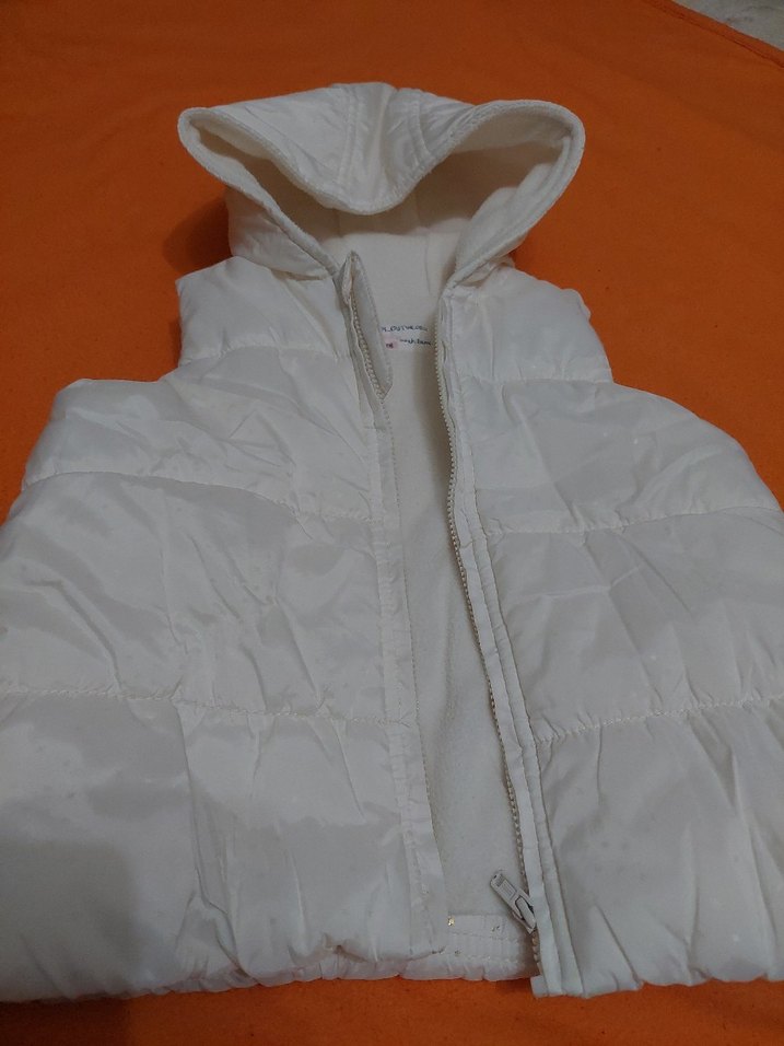 Bebek bedeninde, kapüşonlu ve fermuarlı beyaz, kolsuz, yumuşak ve sıcak kumaştan yapılmış bir yelektir. Normal midi uzunluktadır ve günlük kullanıma uygundur.dolabimda çok.uyhun ve güzel kıyafetler bulunur