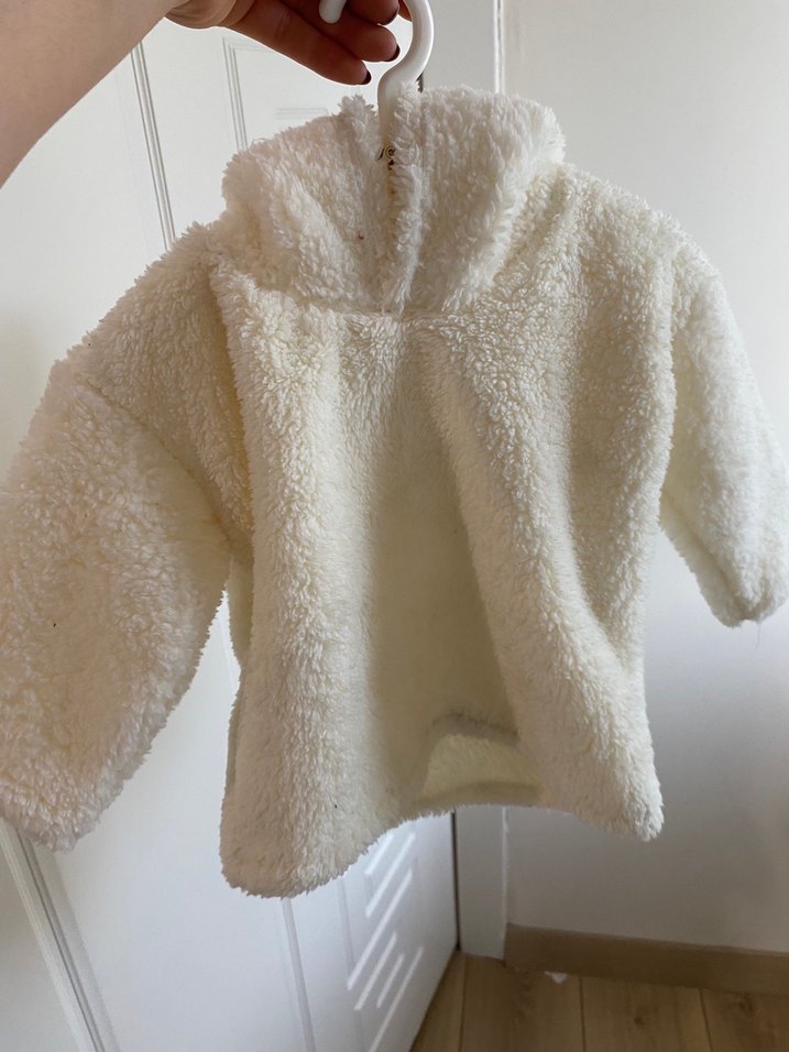 Bebek Beyaz Kapüşonlu Peluş Sweatshirt