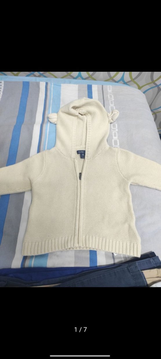 Uzun kollu, kapüşonlu ve kulak detaylı beyaz triko bebek hırkası. Yumuşak ve sıcak dokusu ile konfor sağlar. Kıza da olur erkeğe de Unisex ürün