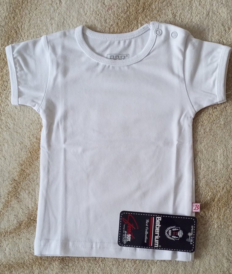 Omuzda çıtçıt düğmeli, yumuşak dokulu beyaz kısa kollu çocuk atleti. 3-3-6-9 aylık mevcut